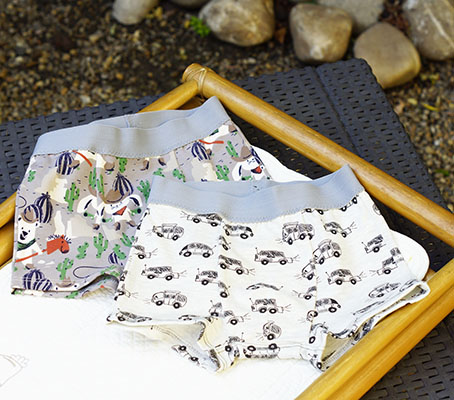 Boxer fantaisie pour enfant, motifs cowboy gris ou bien voitures sur fond écru.