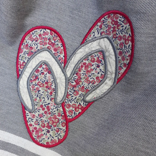Les tongs appliquées sont réalisées en coton Wiltshire rose de Liberty of London.