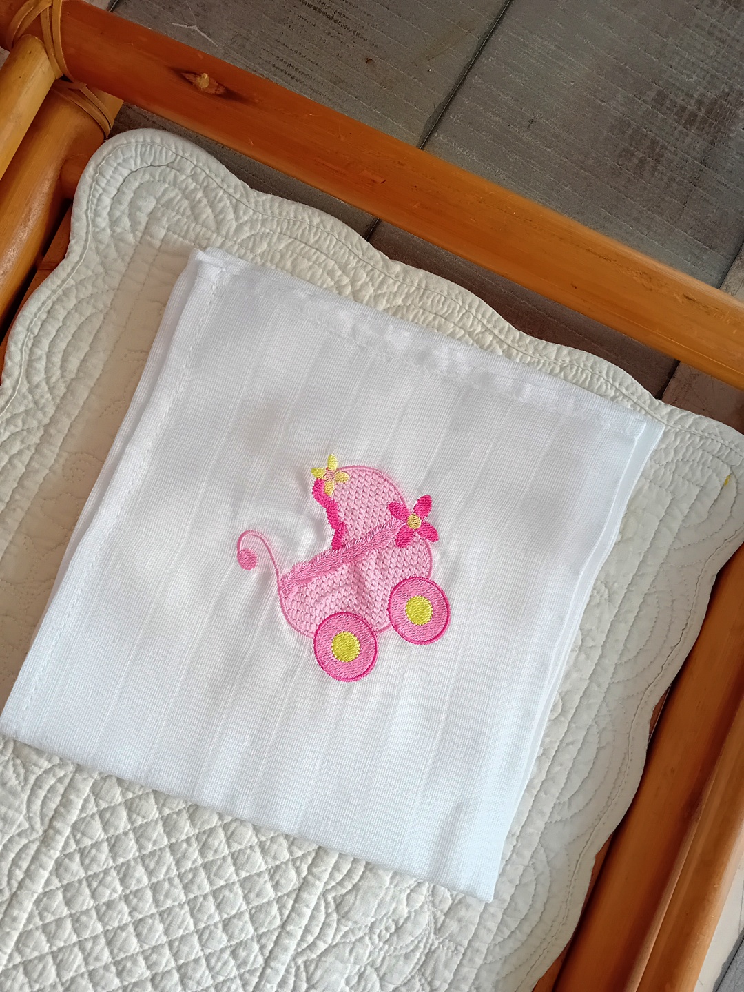 La broderie apporte une touche raffinée et poétique, parfaite pour un cadeau de naissance plein de charme.